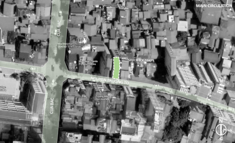 Qua quá trình khảo sát và nghiên cứu hiện trạng, mặt tiền chính của công trình quay về hướng Nam nơi có điều kiện khí hậu thuận lợi với khả năng đón nắng và gió tốt. Tuy nhiên, mặt này cũng tiếp xúc trực tiếp với trục đường lớn, nơi có lưu lượng phương tiện qua lại cao, kéo theo các yếu tố bất lợi như tiếng ồn, khói bụi và ô nhiễm không khí.