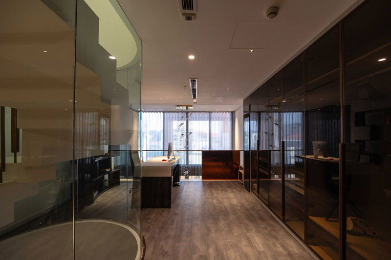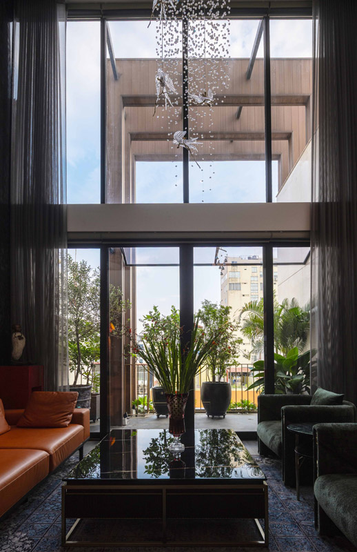 Không gian bên trong được tổ chức linh hoạt, tối ưu tiếp cận giao thông theo từng tầng, vừa phù hợp cho hoạt động kinh doanh, vừa đảm bảo riêng tư. Các ô thông tầng được ví như những “lá phối xanh”, tạo dòng chảy không khí và cảm giác sống động, gần gũi thiên nhiên trong nội bộ công trình.