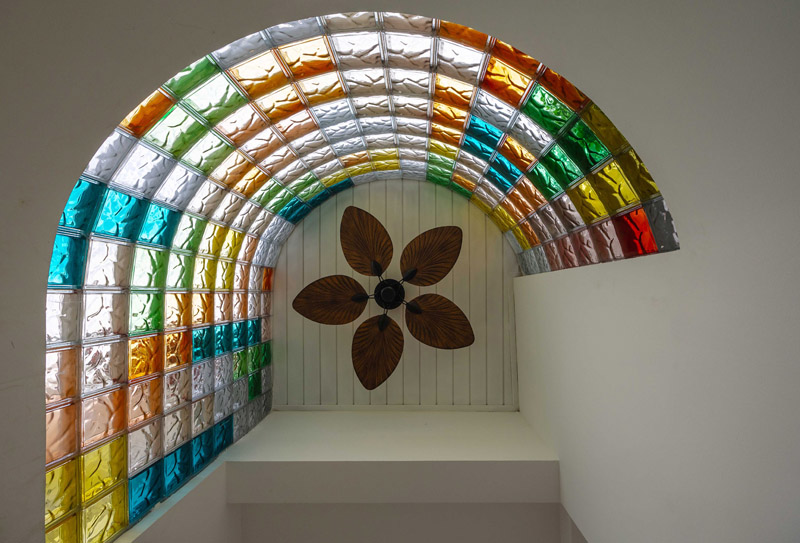 - Ngoài ra, ba ô thông tầng được bố trí theo trục dọc ngôi nhà ở các vị trí chiến lược, giúp tăng hiệu quả thông gió, chiếu sáng và giảm thiểu cảm giác ngột ngạt. Đặc biệt, ô thông tầng phía sau được mở liên tục từ tầng 2 lên đến mái là một lựa chọn “hy sinh diện tích để đổi lấy chất lượng sống”, mang lại sự thông thoáng và giá trị sử dụng bền vững cho toàn bộ công trình.