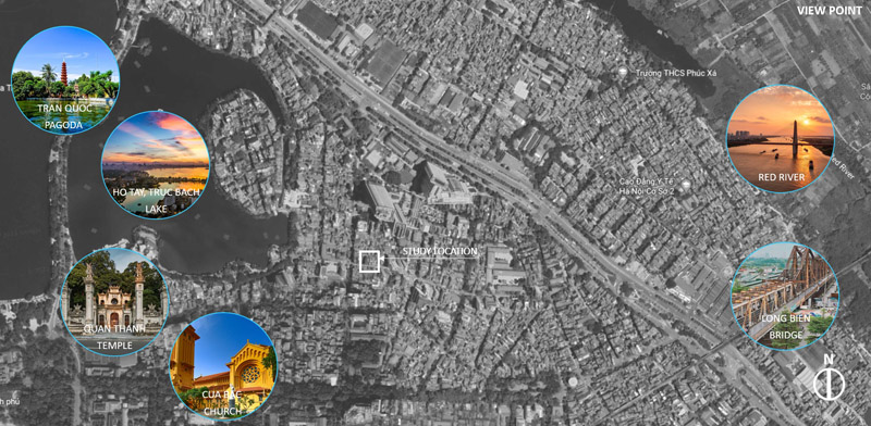 - Hướng Tây (bên trái) giáp nhà hàng xóm. Từ tầng 6 trở lên, có thể tận dụng để lấy sáng gián tiếp và mở rộng tầm nhìn hướng hồ Trúc Bạch và Hồ Tây.