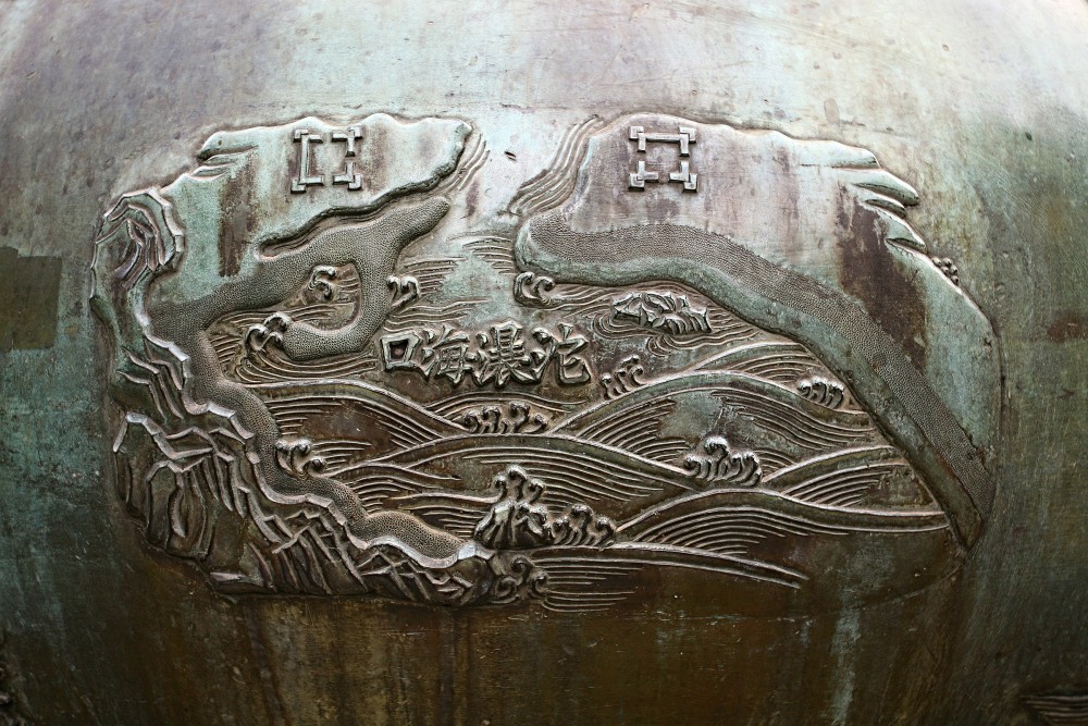 Cửu đỉnh cũng được coi là bộ sách địa chí của Việt Nam, với những địa danh, thắng cảnh tiêu biểu được giới thiệu đủ trên khắp 3 miền, thể hiện một tư tưởng hoà bình, thống nhất đất nước. Đặc biệt, triều đình nhà Nguyễn đã xác lập chủ quyền lãnh hải quốc gia Việt Nam trên Cửu đỉnh ở 3 chiếc đỉnh lớn nhất. Đó là hình ảnh của Đông Hải (Biển Đông – khắc trên Cao đỉnh), và cả các vùng biển Nam Hải (biển phía nam đất nước, khu vực các tỉnh Bạc Liêu, Cà Mau – khắc trên Nhân đỉnh), Tây Hải (biển phía tây đất nước, khu vực các tỉnh Cà Mau, Kiên Giang, giáp vịnh Thái Lan – khắc trên Chương đỉnh).