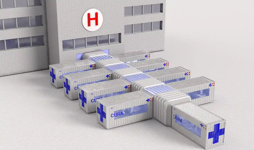 Tại Italy, một nhóm KTS đã cố gắng tìm cách kết hợp lợi thế của phương án “tận dụng sẵn có” và phương án “tiền chế” nhằm tối ưu hóa về thời gian. Kết quả của họ là tạo ra các Cure (đơn vị kết nối cho bệnh hô hấp) bao gồm hệ thống máy tạo áp suất âm bên trong từng container có thể vận chuyển đến bất cứ đâu, triển khai lắp ráp trong vài giờ. Ưu điểm lớn nhất của phương án này là: Tiêu chuẩn y tế buồng bệnh đã được tạo sẵn, đảm bảo và rất linh hoạt trong di chuyển, giá thành có thể chấp nhận được. Nhược điểm: Triển khai quy mô lớn sẽ khó khăn về công nghệ tạo block, việc vận chuyển lắp ráp cần chuyên sâu, hạ tầng đồng bộ không dễ đảm bảo ngay, khó thực hiện với các nước kém phát triển.