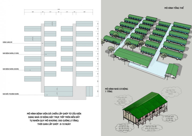 Về giải pháp, bệnh viện dã chiến có thể thiết kế, xây dựng theo 2 cách: