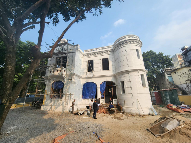Ông Emmanuel Cerise: Quan điểm của chúng tôi là bảo tồn, là phải tìm đúng đặc điểm gốc của công trình để chúng ta phục hồi lại nó. Còn rất nhiều công trình gần đây mà thành phố Hà Nội từng làm trùng tu, tôn tạo đi theo hướng chọn những gam màu mang lại cảm giác nhìn thuận mắt nên có rất nhiều công trình khi mà tôn tạo xong chỉ là tường vàng thêm một vài line trắng thôi. Nhưng trên thực tế thì nó không phản ánh đúng được đặc điểm gốc của công trình ban đầu. Quan điểm của tôi đã là tôn tạo, trùng tu thì chúng ta tôn trọng đặc điểm ban đầu của công trình. Có thể ban đầu chúng ta nhìn những gam màu này nó hơi chói, hơi rực quá, đối lập quá. Nhưng chúng ta phải xác định những biệt thự như này ở Hà Nội, giai đoạn đầu thế kỉ 20 nó được xây dựng với cách phối màu như thế chứ nó không phải cách phối màu như chúng ta nghĩ bây giờ và phải áp cho nó màu nhẹ nhàng hơn. Tôi nghĩ rằng dự án này sẽ trở thành dự án có tính chất điển hình về cách tiếp cận tôn trọng đặc điểm gốc của công trình.