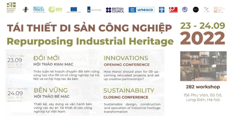 Tới năm 2022, Hội thảo “Tái thiết di sản công nghiệp 2022 – Đổi mới & Bền vững” đã được đồng tổ chức bởi: Quỹ Văn hóa Pháp Đức, Viện Goethe, Viện Pháp, Hiệp hội Các Viện Văn hóa và các Đại sứ quán châu Âu tại Việt Nam (EUNIC), Đại sứ quán Vương quốc Hà Lan, Hội đồng Anh Việt Nam, Văn phòng UNESCO Hà Nội, Phái đoàn Liên minh châu Âu tại Việt Nam phối hợp cùng Doanh nghiệp xã hội bền vững Việt Nam (VSSE), Đại học Kiến trúc Hà Nội, 282 Workshop, cùng sự đồng hành của các tổ chức Vì một Hà Nội đáng sống, Hanoi AdHoc và Heritage Space, nhằm trao đổi kinh nghiệm, kiến thức, cơ hội hợp tác quốc tế về các mô hình chuyển đổi di sản công nghiệp giữa châu Âu và Việt Nam, đồng thời nâng cao nhận thức cộng đồng về giá trị của di sản công nghiệp [8].