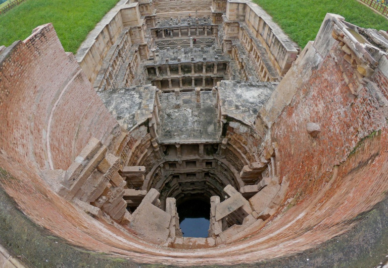 Tầng dưới cùng của Rani Ki Vav là một giếng nước hình trụ tròn có đường kính 30 mét và sâu 10 mét. Ảnh: Wikipedia.