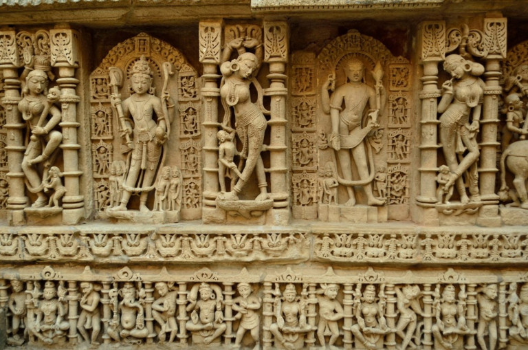 Hầu hết các tác phẩm điêu khắc trong lòng giếng thể hiện sự sùng kính đối với thần Vishnu. Ảnh: Lakshmi Sharath.