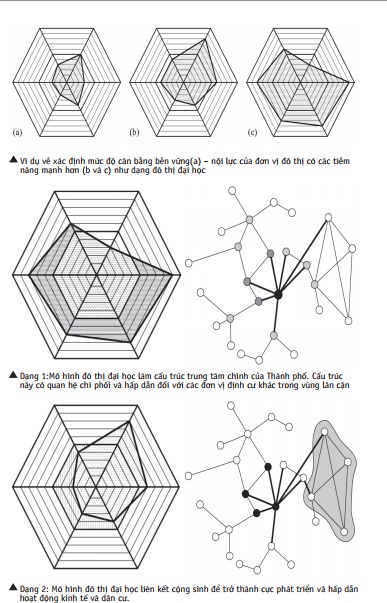 Dựa trên hệ thống lý thuyết đó và các nghiên cứu thực nghiệm cho đô thị đại học, có thể đề xuất 4 mô hình cơ bản của quan hệ giữa đô thị đại học và thành phố và giữa chúng với nhau như sau: Mô hình đô thị đại học trung tâm, tạo cực hút cho các vùng xung quanh nó; Mô hình đô thị đại học từ liên kết thành nhóm, cụm; Mô hình đô thị đại học phụ thuộc; Mô hình đô thị đại học hỗn hợp.