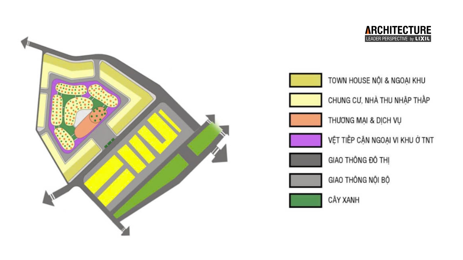 - Các dãy nhà town house ngoại khu là vệt kinh doanh đô thị.