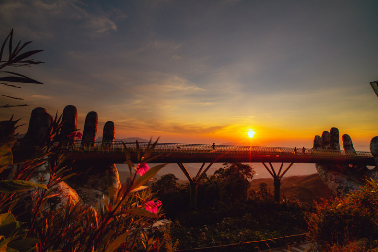 Nhắc tới Đà Nẵng, chúng ta không thể không nhắc đến Cầu Vàng, công trình trở thành biểu tượng du lịch mới của thành phố, một điểm nhấn đặc biệt, thu hút sự quan tâm của cộng đồng xã hội và du khách thập phương. Tọa lạc tại Khu du lịch Sun World Ba Na Hills, cây cầu nối liền Ga Marseille với Vườn hoa Thiên Thai, được thiết kế dài 150m, rộng 12,8m với 8 nhịp, 7 trụ và 2 mố. Cây cầu có hình dáng uốn lượn mềm mại, tựa như một dải lụa vàng vắt ngang qua sườn núi. Điểm nhấn ấn tượng nhất của cây cầu chính là đôi bàn tay khổng lồ rêu phong, làm bằng sợi thủy tinh và lưới thép, được phủ lớp composite giả đá màu xám tạo cảm giác như được chạm khắc từ đá tự nhiên.