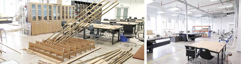 Phòng thực hành của CTKT: Được trang bị đầy đủ cho các hoạt động thực hành với cơ sở vật chất đa dạng như xưởng thiết kế, xưởng mộc, xưởng mô hình, phòng máy tính, phòng in, phòng chụp hình,…