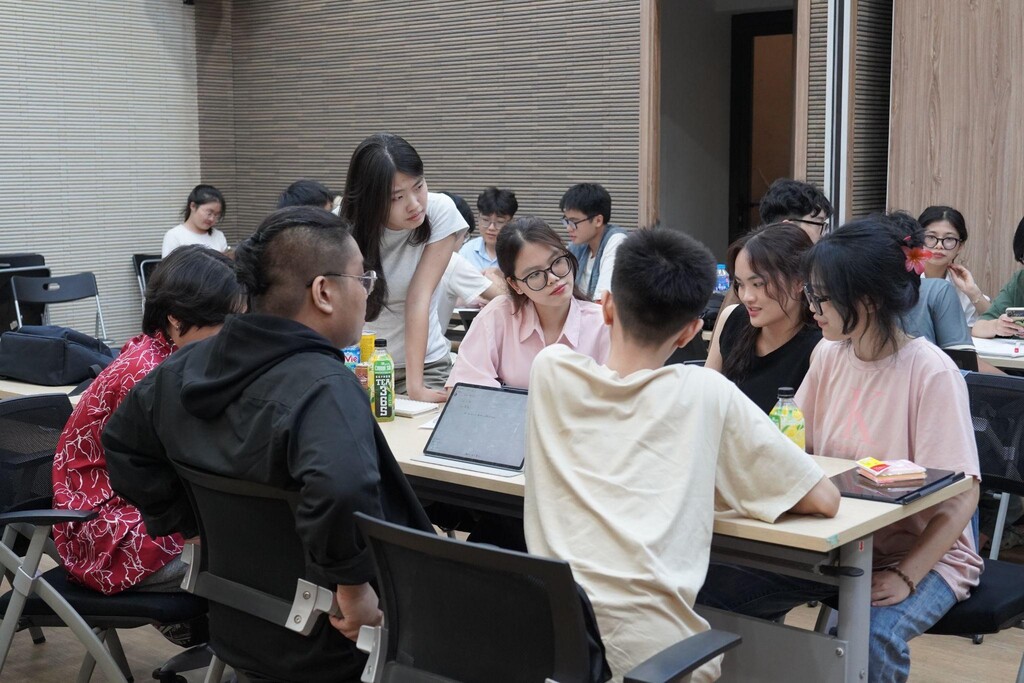 Sinh viên được chia theo nhóm, cùng nhau thảo luận và chia sẻ ý tưởng độc đáo