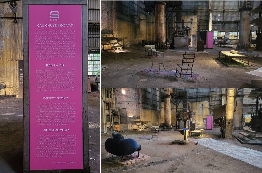 Những món đồ của một nền công nghiệp cũ mang những giá trị độc đáo về công năng, lịch sử và văn hóa. Bên cạnh đó, những đồ vật được thiết kế mang phong cách đương đại được lồng ghép tạo lên một bức tranh tương phản, sống động về đồ vật. Mỗi “nhân vật” trong câu chuyện đều mang đến những tiếng nói riêng biệt, trong một sắp đặt thú vị tại không gian của một di sản công nghiệp, phân xưởng gia công nóng 1B.