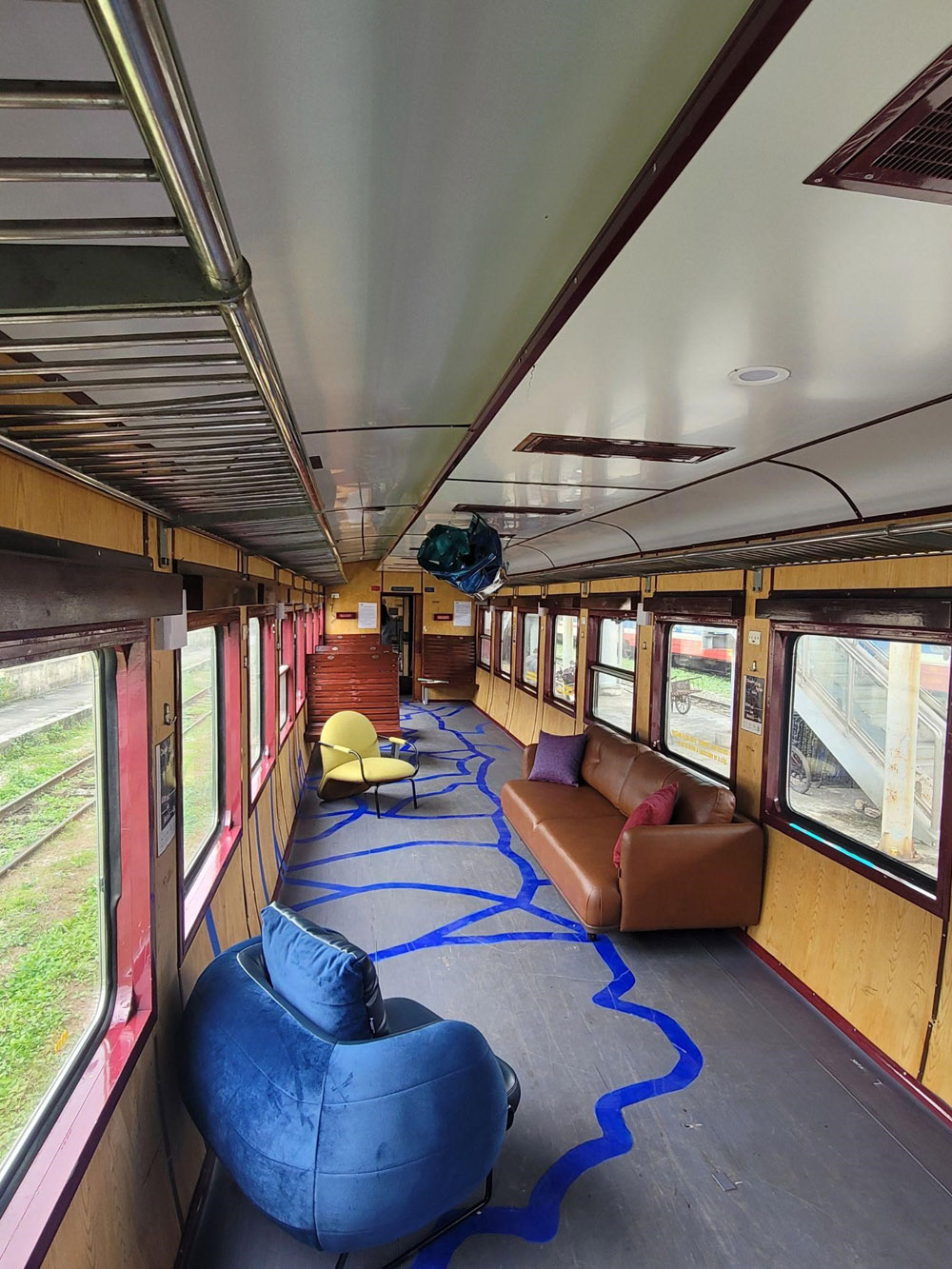 Những thiết kế nội thất đương đại của SEMA còn xuất hiện trên “chuyến tàu hành trình di sản”. Chuyến tàu kéo dài khoảng 20 phút nhưng đem lại nhiều cảm xúc. Xuyên suốt quãng đường từ cầu Long Biên đến nhà máy Ga xe lửa, hành khách không chỉ được trải nghiệm nghệ thuật qua không gian sáng tạo mà còn có thể cảm nhận dòng chảy thời gian từ quá khứ tới hiện tại.