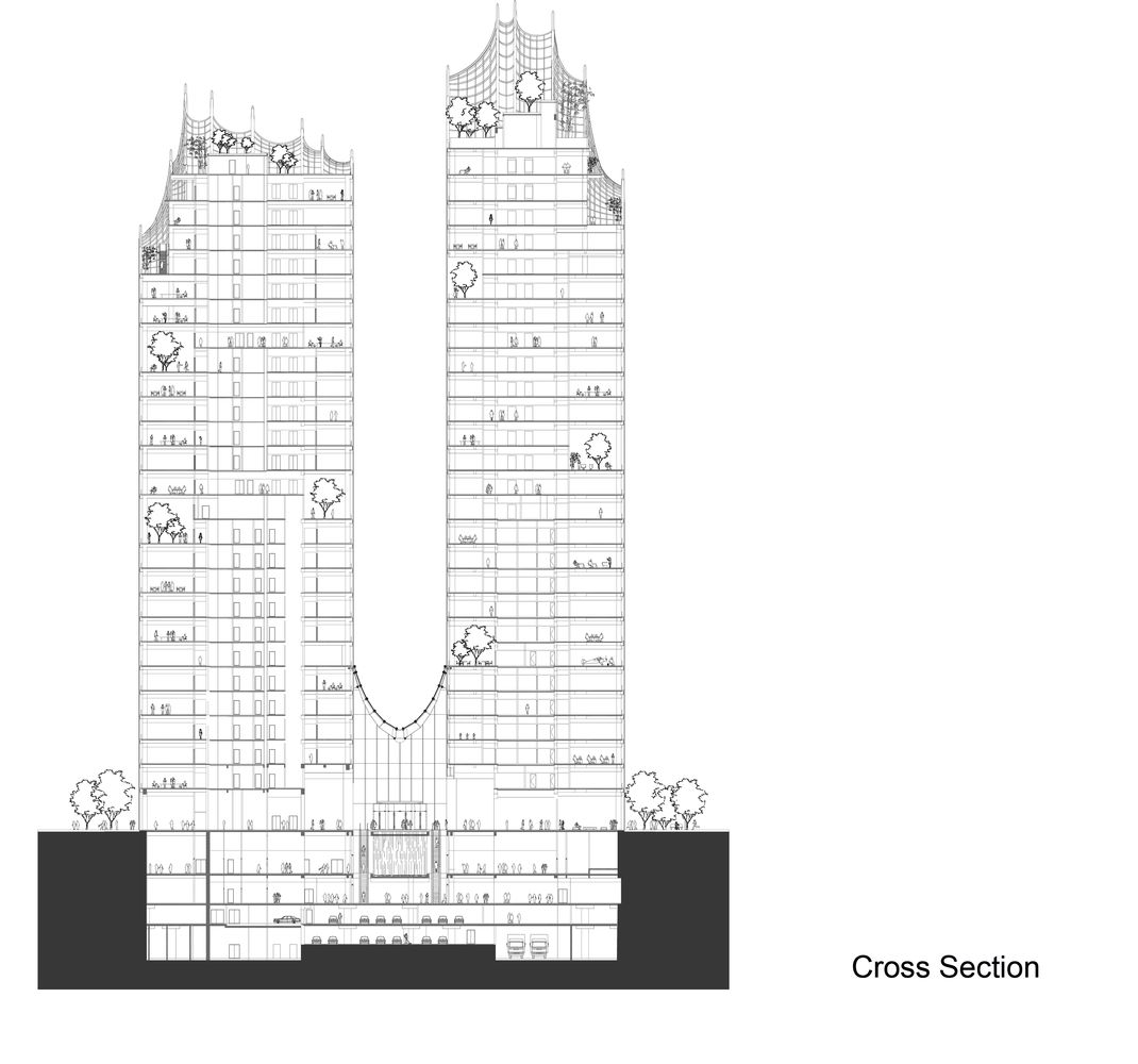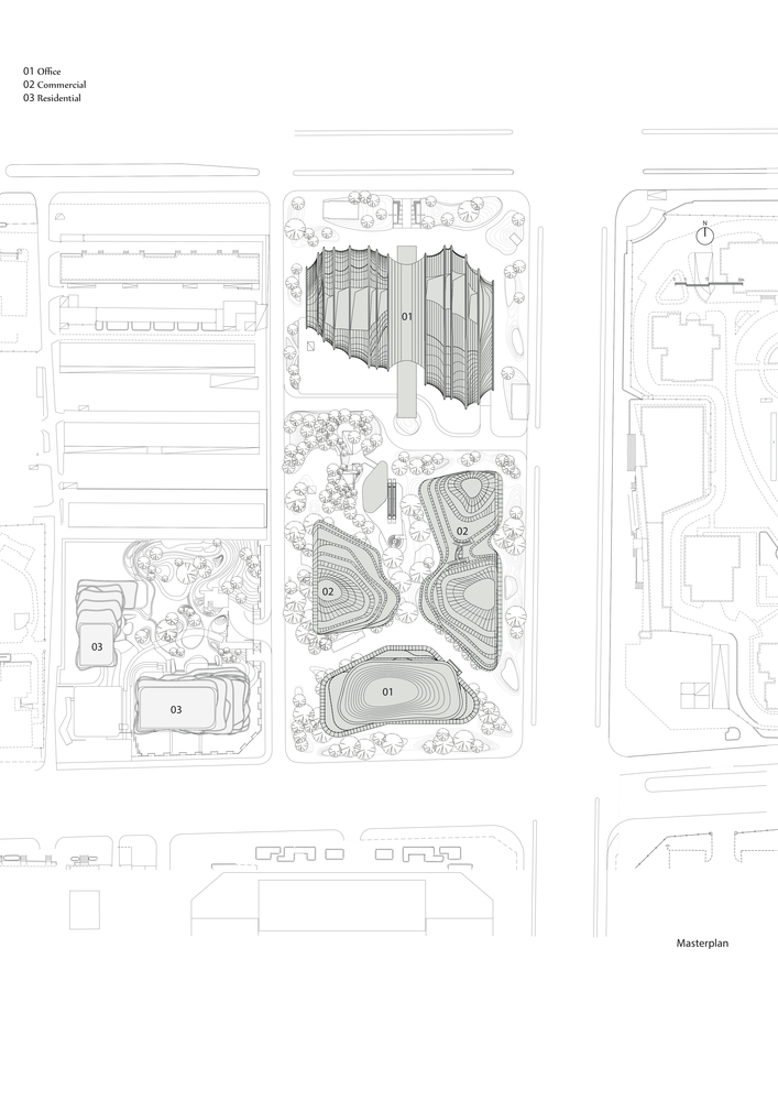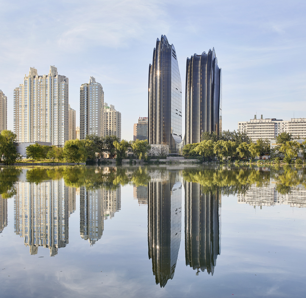Công trình lấy cảm hứng từ các bức tranh phong cảnh truyền thống của Trung Quốc. Thiết kế của MAD đưa ra một loạt các hình khối tự nhiên và được kết nối bởi một đại sảnh bằng kính, tòa tháp đôi với hình thức không đối xứng nằm sát mặt hồ của công viên nhìn từ xa như hai ngọn núi mới mọc lên giữa trung tâm thành phố. Các trung tâm thương mại quy mô nhỏ, thấp tầng xuất hiện như các tảng núi đá bị xói mòn và được sắp đặt một cách ngẫu nhiên. Hai căn hộ Armani ở phía tây nam có ban công lớn và lượn sóng để khuyến khích mọi người tương tác với thiên nhiên nhiều hơn.
