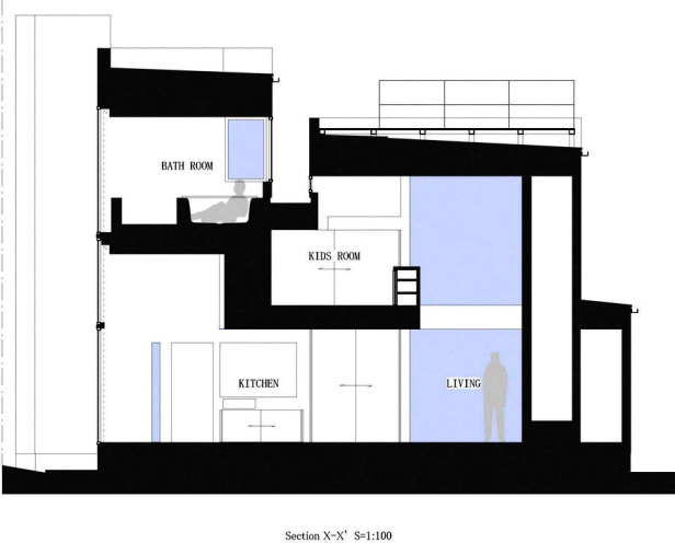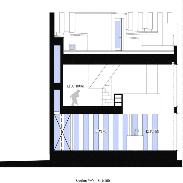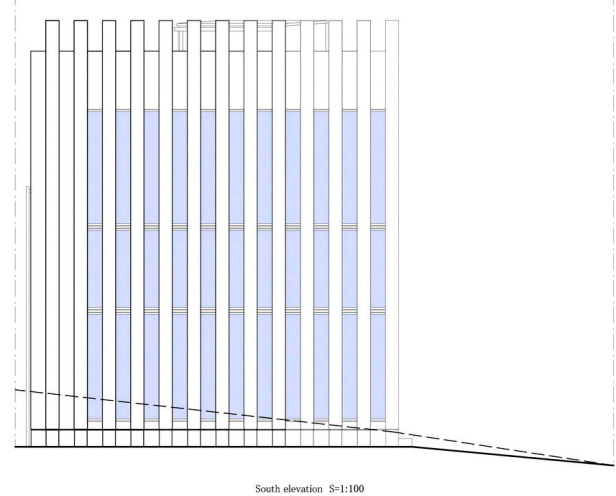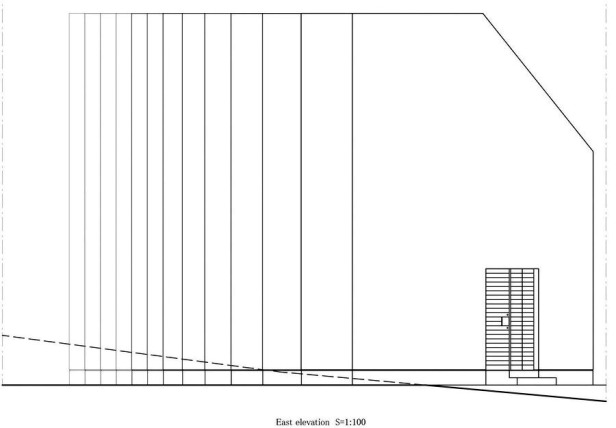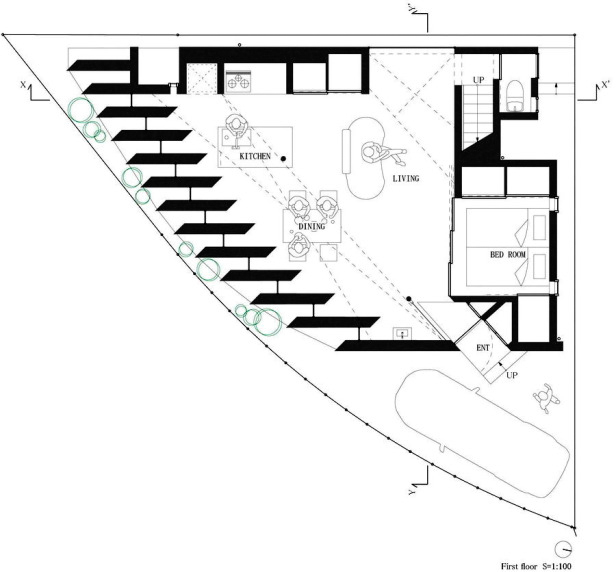 Ngôi nhà được thiết kế dưới hình dạng của những nan quạt với tính năng chính như là những lam thông gió lớn; tạo ra sự riêng tư và đồng thời cung cấp ánh sáng trong suốt các thời điểm trong ngày.