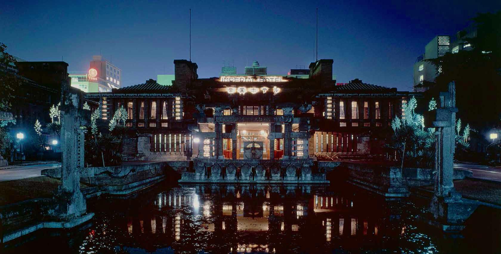 Khách sạn Hoàng Gia được xây dựng lần đầu tiên vào năm 1890 là nơi lưu trú tiện nghi dành cho khách nước ngoài. Đến thời kỳ hiện đại hóa vào đầu những năm 1900, số lượng khách quốc tế đến Nhật Bản tăng đột biến. Khách sạn đã ủy quyền cho KTS nổi tiếng Frank Lloyd Wright thiết kế thêm tòa nhà thứ hai vào năm 1916.