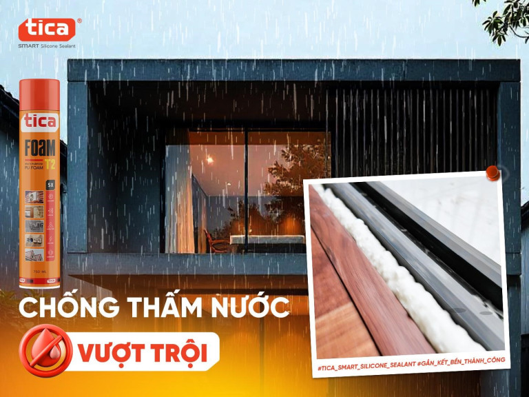 Là dòng sản phẩm mới ra mắt đầu năm 2025 của thương hiệu Keo trám thông minh Tica Smart Silicone Sealant, Tica PU FOAM T2 được khách hàng đón nhận tích cực nhờ khả năng chống thấm nước tốt, vượt trội hơn so với các dòng sản phẩm khác trên thị trường. Điều này giúp ngăn chặn sự xâm nhập của nước vào khe hở, bảo vệ công trình khỏi tác động của thời tiết, hạn chế nguy cơ ẩm mốc, rò rỉ nước.