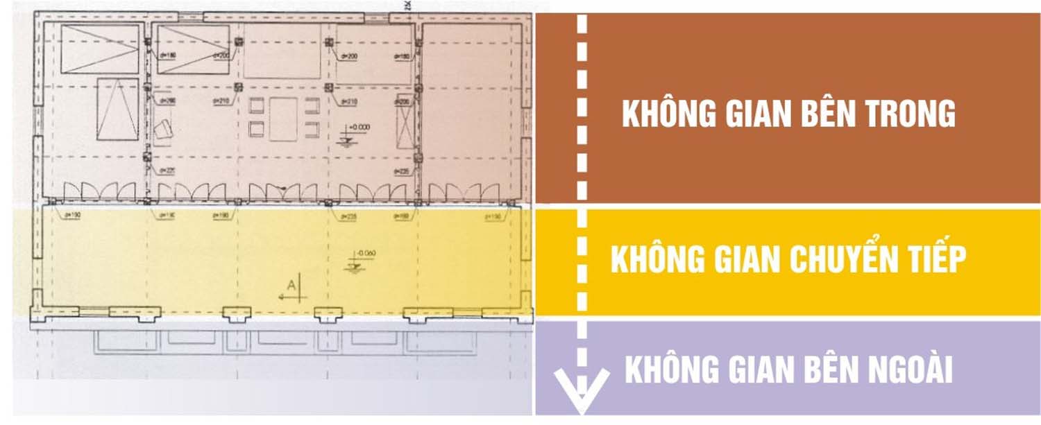 Việc khai thác cách tổ chức không gian đa năng, linh hoạt của kiến trúc truyền thống và tái hiện không gian truyền thống trong kiến trúc nhà ở nông thôn đương đại là cách để tiếp nối tinh thần bản địa, cũng là cách để kiến trúc nhà ở nông thôn tìm được ngôn ngữ và bản sắc kiến trúc riêng phù hợp môi trường tự nhiên và môi trường văn hóa của địa điểm.