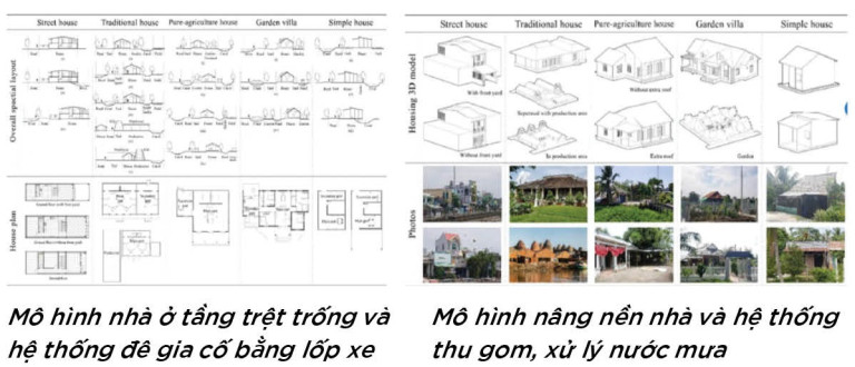 Trong phần tiếp theo, trên cơ sở định hướng liên quan đến quy hoạch, thiết kế, quản lý và áp dụng công nghệ. Chúng tôi đưa ra một số mô hình điển dân cư nông thôn và, giải pháp thiết kế nhà ở vùng ĐBSCL thích ứng với từng loại hiện tượng thiên tai do tác động của BĐKH.