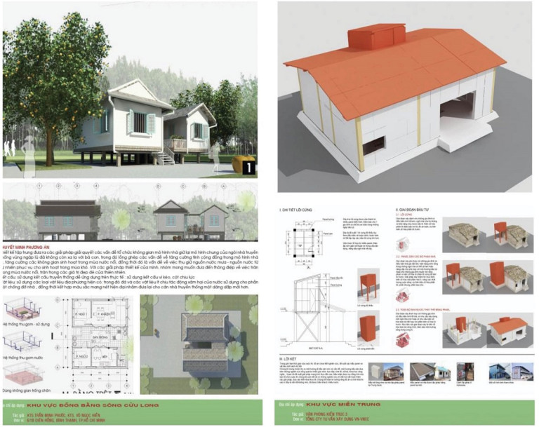 3. Nhà ở vùng bão lũ, ngập lụt – Phương án Cuộc thi “Nhà ở nông thôn vùng bão lũ, ngập lụt” do Hội Kiến trúc sư Việt Nam tổ chức (2011) (Nguồn: Viện Kiến trúc – Hội KTS Việt Nam)