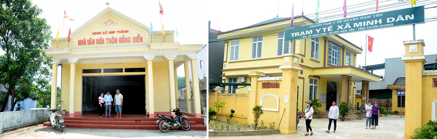 - Kiến trúc công trình công cộng (CTCC) hầu như được quan tâm đầu tư và phủ kín các hạng mục (Trường học, trạm y tế, UBND, Nhà văn hóa,…) tại các thôn xã. Bên cạnh các kiểu nhà ở dân gian truyền thống, làng truyền thống, xuất hiện nhiều hình thức kiến trúc mới với vật liệu kiểu dáng hiện đại. Đặc biệt, một số cấu trúc quần cư và mẫu nhà dân gian truyền thống đã được phát huy và tạo nên những giá trị mới trong các mô hình làng du lịch, làng văn hóa, khu nghỉ dưỡng, nhà hàng (nhà sàn của các dân tộc Thái, Mường, Tây Nguyên; nhà 3 gian hoặc 5 gian với nhiều chái của các vùng đồng bằng, nhà nổi và nhà miệt vườn ĐBSCL…).