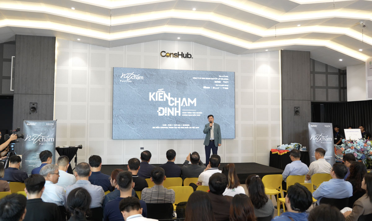 Diễn ra vào tháng 11/2025, tại Trung tâm Kết nối ngành Xây dựng (Hà Nội), Triển lãm kiến trúc “Nét chạm Pavilion” do Viglacera và các đối tác phối hợp tổ chức thu hút nhiều KTS, nhà đầu tư thuộc lĩnh vực vật liệu xây dựng tham dự. Trong khuôn khổ Triển lãm kiến trúc, Tọa đàm “Kiến – Chạm – Định” được tổ chức là cầu nối giữa các KTS, nhà thiết kế và đơn vị giải pháp kiến trúc. Tại tọa đàm này, giới chuyên môn đề xuất mô hinh quy hoạch thành phố “thấm nước” kết hợp vật liệu xanh và công nghiệp bền vững.