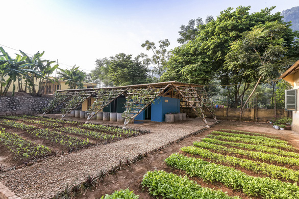 Vì vậy, các thầy, cô giáo và học sinh có thể trồng rau, trồng cây xung quanh để công trình trở thành vườn. Vườn vệ sinh dùng điện từ pin mặt trời, nhưng để tiết kiệm năng lượng, việc thiết kế đã chú ý đến việc thông gió và lấy ánh sáng tự nhiên.