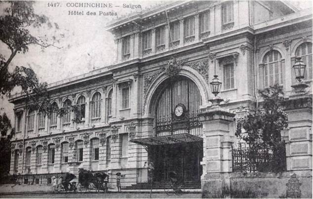 Hình 3,4: Bản đồ Sài Gòn năm 1903 với khu phố do người Pháp xây dựng ở Quận 1 (trái) và tòa nhà Bưu điện TPHCM (phải) – (Nguồn: Wikipedia, 2019)
