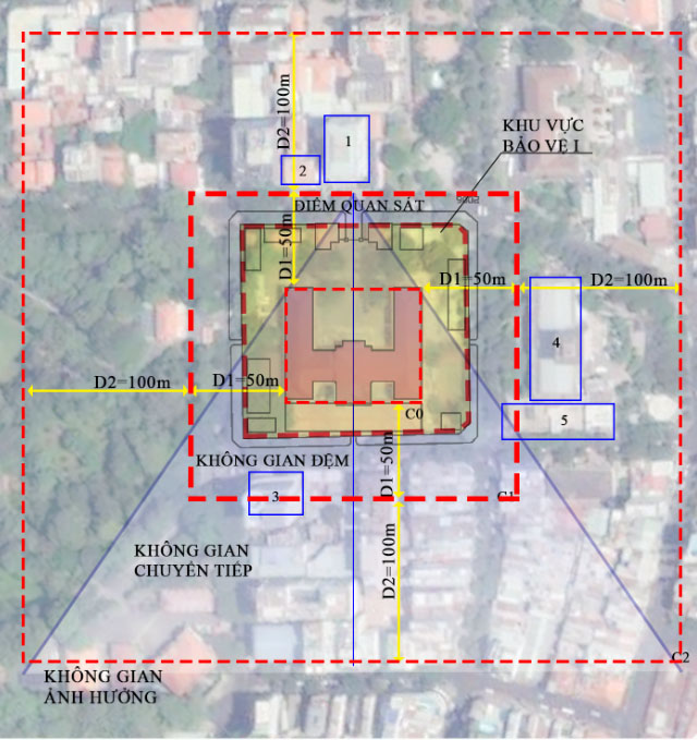 Áp dụng phương thức bảo tồn trên cơ sở kiểm soát vùng không gian và chiều cao nhằm tránh sự xung đột, lấn át di sản, xác định phạm vi 3 vùng không gian bảo tồn DSKT TAND TPHCM: