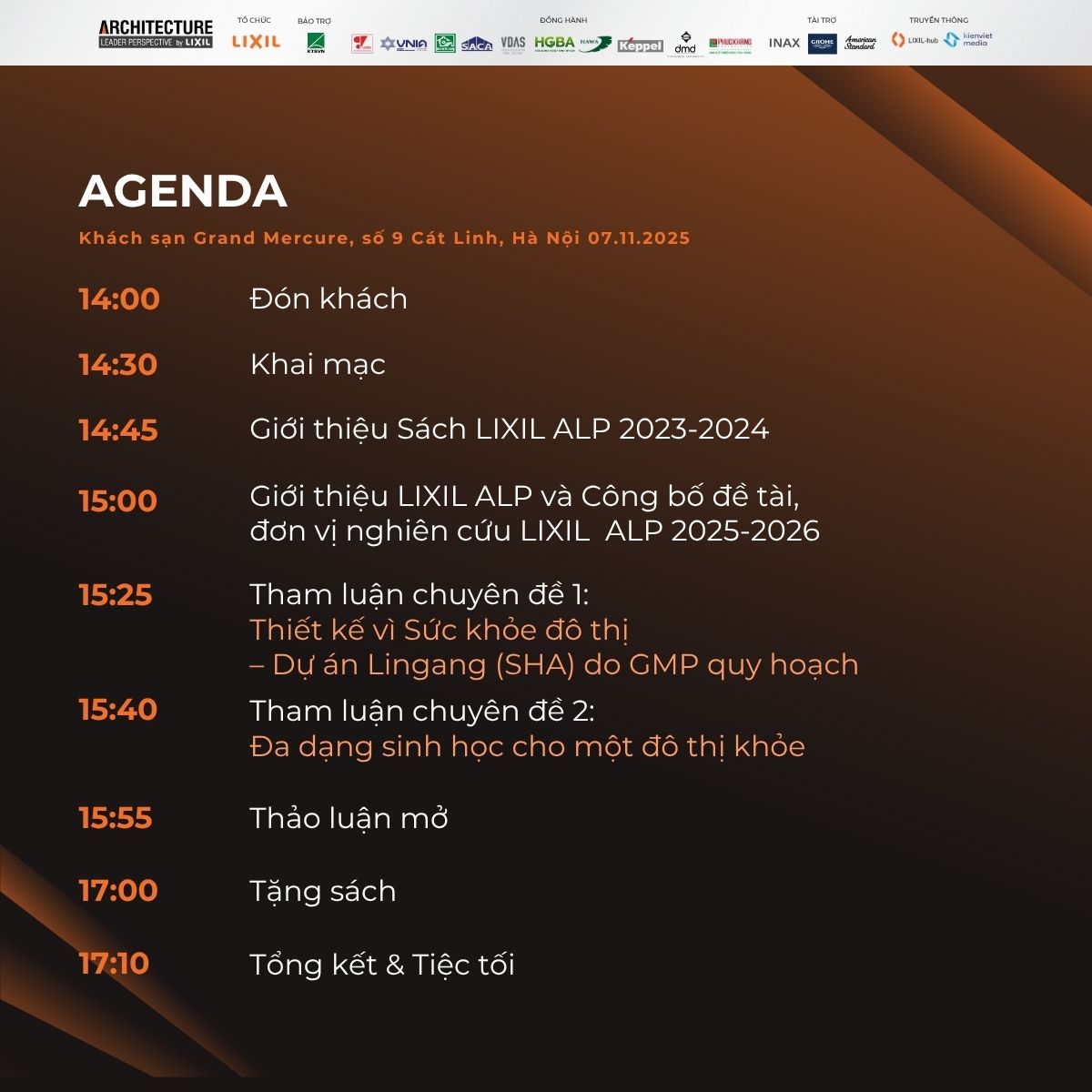 Chiều ngày 07/11/2025, tại khách sạn Grand Mercure (số 9 Cát Linh, Hà Nội), LIXIL Việt Nam tổ chức sự kiện LIXIL Architecture Leader Perspective (LIXIL ALP) 2025-2026: “Sức khỏe Đô thị cho Tương lai Không gian sống Việt: Gặp gỡ – Đối thoại – Cộng hưởng”.