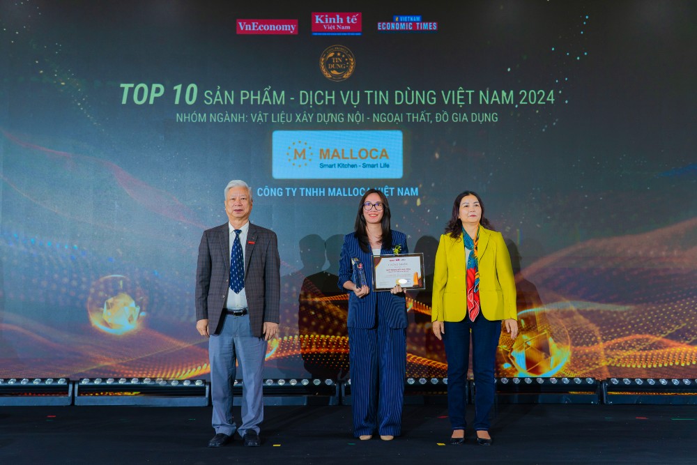 Năm 2024, Malloca tiếp tục nhận được tin tưởng của người tiêu dùng khi đạt Top 10 nhóm Vật liệu Xây dựng, Nội – Ngoại thất và Đồ gia dụng tại giải Tin Dùng Việt Nam 2024, với chủ đề “Thương hiệu tích cực, tiêu dùng bền vững”. Giải thưởng này không chỉ là sự ghi nhận cho hành trình đổi mới không ngừng của Malloca mà còn khẳng định tầm nhìn tiên phong trong việc mang đến các giải pháp nhà bếp thông minh, bền vững và thân thiện với môi trường.