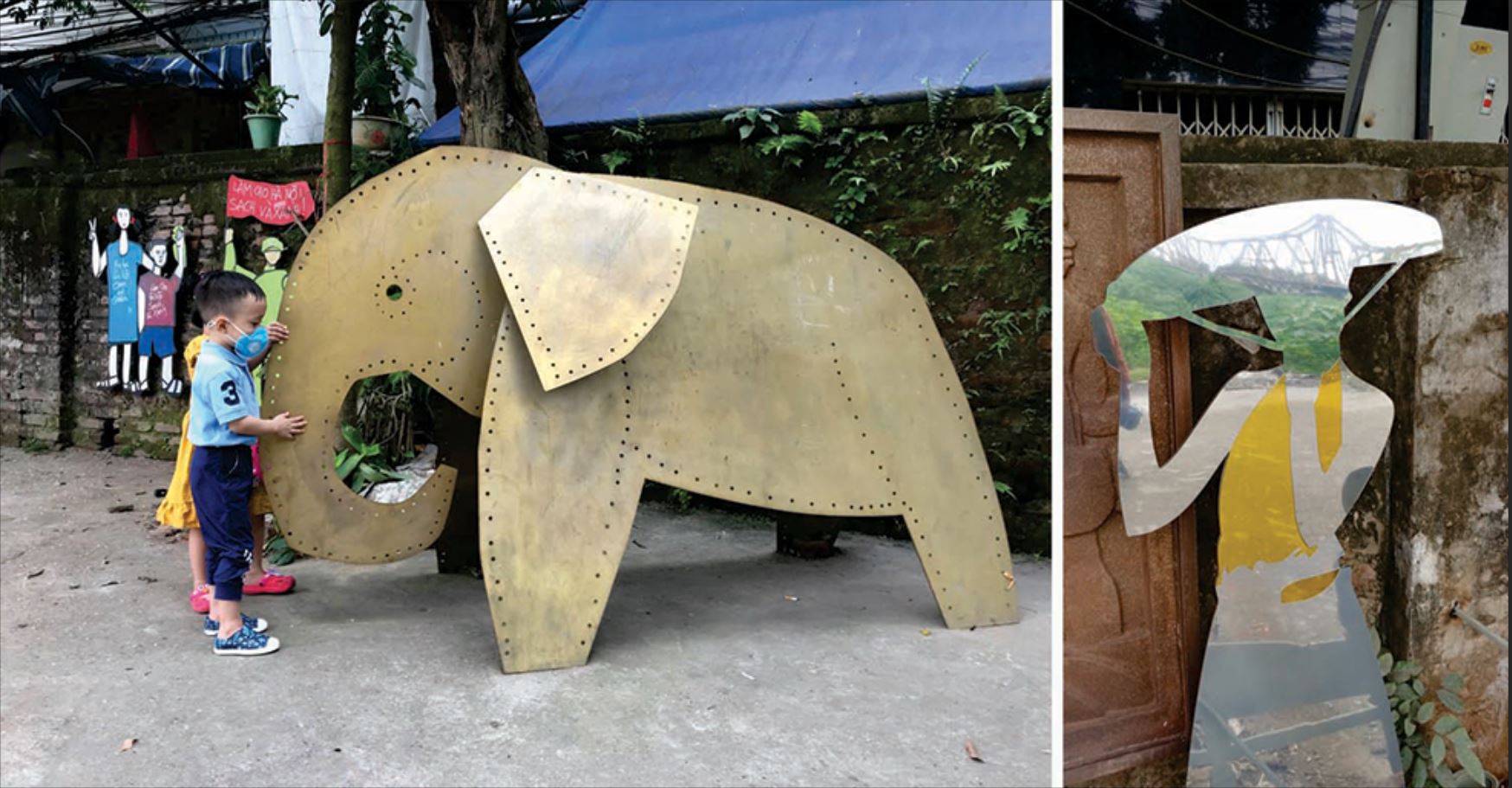 Những tác phẩm này dù rất mới lạ nhưng lại không có gì là kiểu cách. Nó chạm vào ký ức, làm xúc động người dân nơi đây vì kể lại những câu chuyện về chính cuộc đời của họ. Nghệ thuật chen vào cuộc sống một cách tự nhiên nhất, như cách nghệ sĩ Úc George Burchett làm một con voi sắt bên một bức tường rêu ẩm vốn có, mọc đầy dương xỉ. Đây cũng là chỗ trẻ con hay ra vui chơi. Những câu chuyện về dòng sông, về thuyền bè, về người gồng gồng gánh gánh trong các tác phẩm của Nguyễn Thế Sơn, Vũ Xuân Đông là câu chuyện quá khứ luôn được các bạn trẻ yêu thích vì là những thử nghiệm mới của chất liệu đèn led inox.