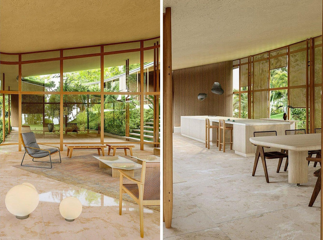 Kiến trúc sư sử dụng toàn bộ gỗ tự nhiên của địa phương để làm nội thất cho ngôi nhà. Nhờ đó mà các yếu tố nội thất và thiết kế kiến trúc hòa quyện vào nhau, tạo ra một ngôn ngữ thiết kế thống nhất và thú vị. Ngôi nhà cũng được thiết kế để tận dụng lợi thế của ánh sáng mặt trời và thông gió tự nhiên.