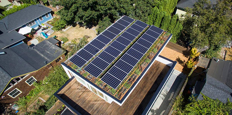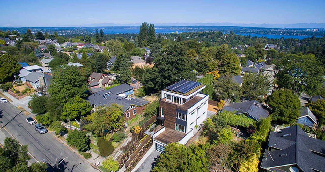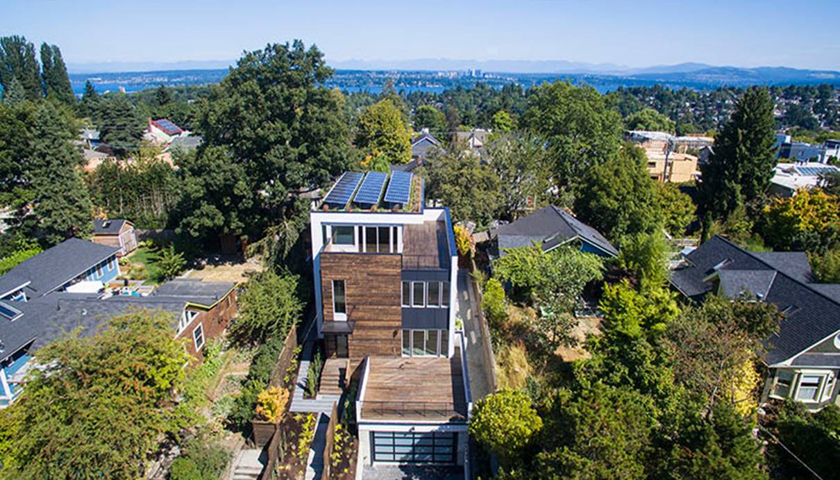 Ngôi nhà “xanh” nằm trên ngọn đồi Capitol, ở Seattle. Được thiết kế bởi Cty Phát triển Dwell, ngôi nhà mang kiến trúc hiện đại và đương thời, với điểm nổi bật là sử dụng tấm năng lượng mặt trời và cây xanh trên mái nhà.