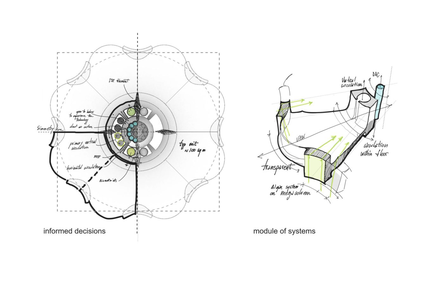 Trong khi thiết kế nguyên mẫu là một tòa nhà chọc trời thu thập 1.000 tấn carbon hàng năm, những phương pháp hút carbon mà công trình sử dụng có thể ứng dụng cho các tòa nhà thuộc mọi kiểu dáng và kích thước. Những vật liệu xây dựng như gạch sinh học, bê tông sinh học, bê tông tổng hợp từ cây gai dầu và gỗ giúp giảm 50% lượng carbon tạo bởi quá trình thi công so với sử dụng bê tông và thép thông thường.
