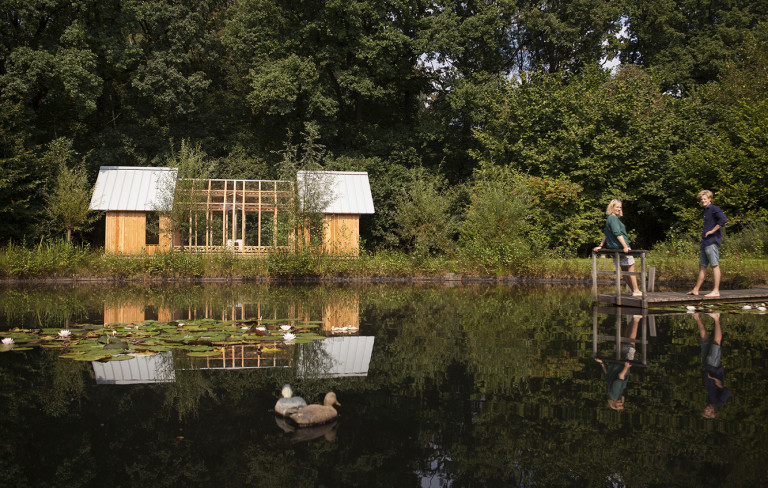 Ngôi nhà nằm cạnh hồ nhỏ trong vườn nhà Schols được xây dựng gần như hoàn toàn bằng gỗ linh sam. Nhìn qua sẽ thấy ngôi nhà giống như những nhà vườn điển hình khác. Nhưng Schols đã tách cấu trúc kính bên trong khỏi các bức tường gỗ và mái kim loại bên ngoài và lắp chúng vào đường ray. Bức tường ở giữa có thể trượt vào bên trong hay ra ngoài để tạo ra các không gian có cách bố trí khác nhau.