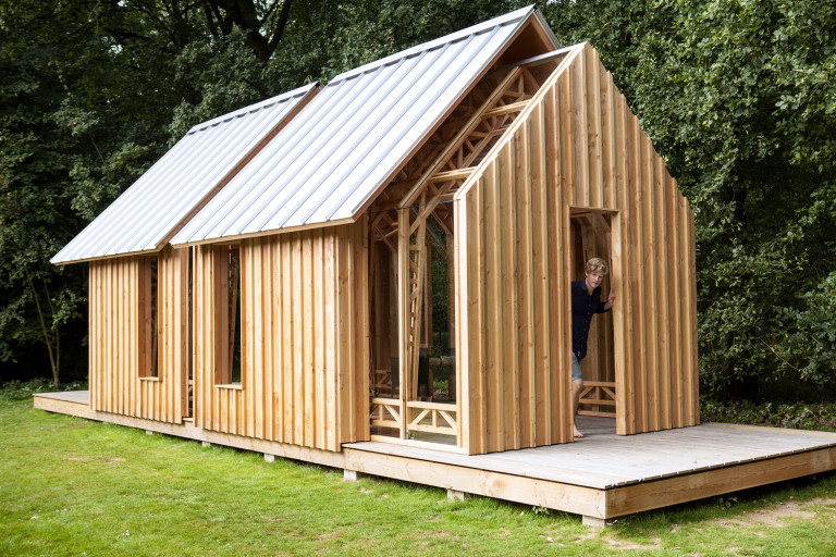 Kiến trúc sư Caspar Schols đã thiết kế một ngôi nhà bằng vật liệu gỗ với những bức tường trượt dọc theo thân nhà ở Eindhoven, Hà Lan.