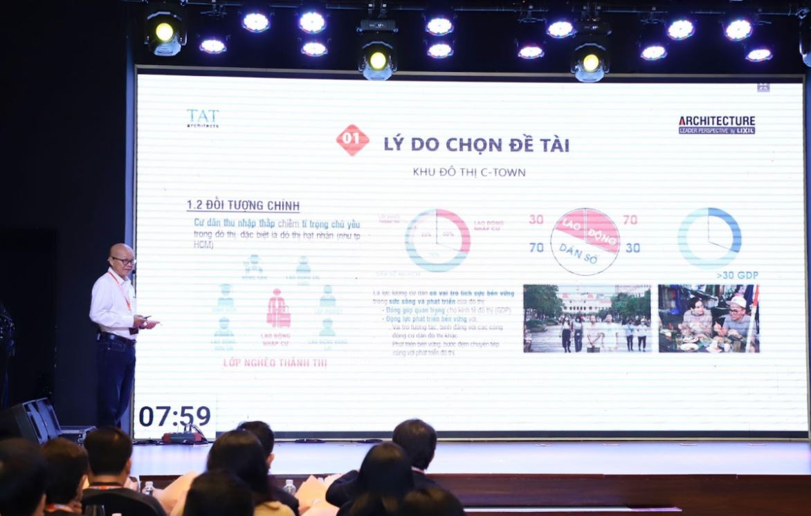 TAT Architects Studio thực hiện nghiên cứu về “Khu đô thị C-TOWN”. Từ những tìm hiểu về thực trạng cấu trúc dân cư đô thị; đời sống của đối tượng thu nhập thấp; chính sách về nhà ở xã hội, quỹ đất quy hoạch cho hạ tầng kỹ thuật và hạ tầng xã hội; hiệu quả đầu tư và quản lý những khu nhà ở xã hội đã thực hiện, đơn vị nghiên cứu tìm kiếm giải pháp thúc đẩy sự hình thành các khu đô thị C-TOWN, mang lại hiệu quả đối với cuộc sống của các tầng lớp cư dân thu nhập thấp, phát triển chung đô thị theo hướng bền vững, văn minh, nghĩa tình, hướng tới sự vận hành cân bằng của Hệ sinh thái đô thị.
