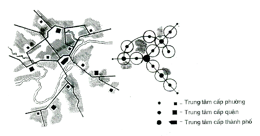 Việc phân cấp, phân nhóm công trình HTXH, xác định bán kính phục vụ là cơ sở cho việc quy hoạch hệ thống HTXH đô thị với các giải pháp cấu trúc: