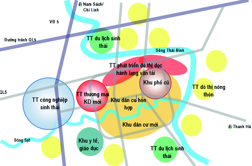 – Cấu trúc phân vùng, tuyến phát triển công trình HTXH.