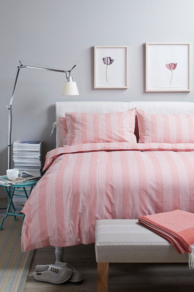 Kẻ sọc cổ điển trắng đen là loại hoa văn được coi là tồn tại trường tồn nhất, nhưng bạn có thể sử dụng các loại kẻ sọc màu sắc tươi sáng khác. Trong những mục đích thiết kế tạo hiệu hứng vui tươi khác nhau, ví dụ như chiếc giường màu hồng này, bạn có thể sử dụng hiệu ứng kẻ sọc để đem lại sự mềm mại và bớt rực chói hơn khi dùng một màu hồng trơn nguyên thủy.