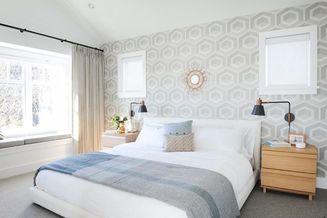 Bạn đã cảm thấy sẵn sàng cho một thiết kế đẳng cấp? Hãy thử hai cách phối hợp cuối cùng để đảm bảo sự cân bằng. Trong không gian này, khoảng 60% họa tiết hoa văn mờ trên tường và thảm hình học chiếm 30%, cuối cùng là 10% họa tiết hữu cơ trên gối khác biệt.