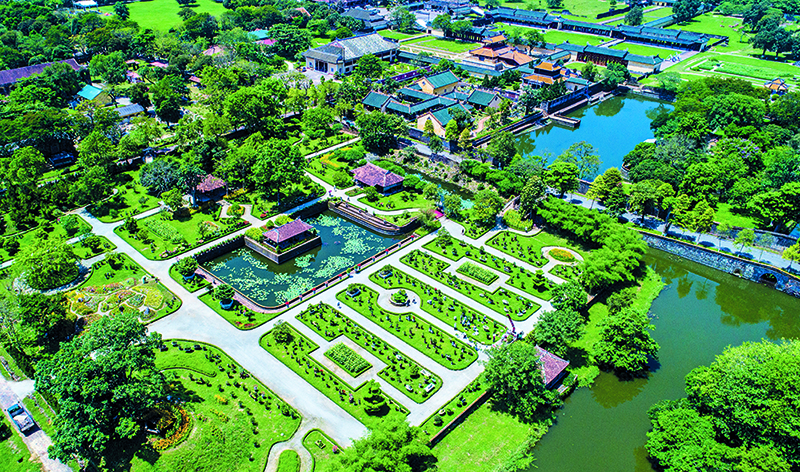 – Là nơi tập hợp các loại hình kiến trúc truyền thống phong phú đa dạng với đủ các loại hình điện, đường, lầu, các, hành lang, thủy tạ, đình, quán, cầu, cống… được xây dựng tinh tế, trang nhã với quy mô vừa phải, rất hài hòa với khung cảnh tự nhiên. Có thể nói đây chính là nơi bảo tồn quỹ kiến trúc truyền thống điển hình và phong phú nhất của nước ta hiện nay.