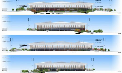 Một số hình ảnh bản vẽ thiết kế Sân vận động Olympic Tokyo 2020 của Kengo Kuma.