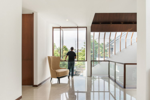Tọa lạc trong một khu dân cư ở Bintaro, ngôi nhà trông khác biệt với những ngôi nhà lân cận có mặt tiền đường tương tự. Được xây dựng với diện tích 200 m2, ngôi nhà với đặc điểm thú vị là lô đất tiếp giáp hai trục đường chính ở mặt trước và mặt sau, tác động đến hình dáng và bố cục chức năng trong ngôi nhà.