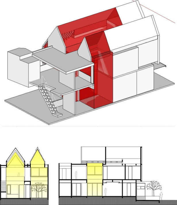 Sự hiện diện của hai lối vào ở mặt trước và mặt sau của lô đất tạo ra một hành lang lưu thông ẩn bên trong nhà; ngôi nhà, do đó cần có một “điểm dừng”. Kiến trúc sư sử dụng triết lý krowakisme (krowak = lỗ trống);krowakisme đó được diễn dịch với sự xuất hiện của sân trong, khoảng trống và cầu nối trên lầu 1.