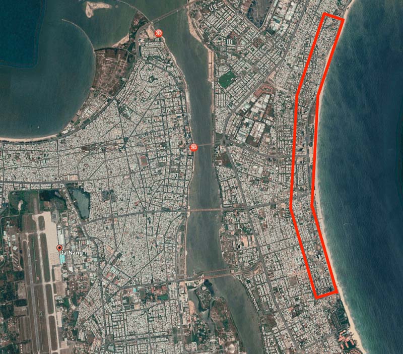 Ngành du lịch bao gồm một phần đáng kể trong nền kinh tế của Đà Nẵng thông qua sự gia tăng số lượng khách du lịch, và do đó có tác động đáng kể đến mật độ, loại hình xây dựng, sử dụng và địa điểm của họ. Các điểm du lịch địa phương bao gồm khu nghỉ mát và công viên giải trí Ba Na Hills và đô thị cổ Hội An. Tuy nhiên, điểm thu hút khách du lịch chính là bãi biển Mỹ Khê, thường được liệt kê là một trong những bãi biển đẹp nhất thế giới. Do đó, các địa điểm bên bờ biển cho việc xây dựng các quán bar, nhà hàng, khách sạn và khu nghỉ dưỡng mới được các nhà đầu tư tích cực tìm kiếm để phát triển mới. Hình 2 cho thấy khu vực được miêu tả gần đúng của các công trình cao tầng dọc theo bãi biển Mỹ Khê.