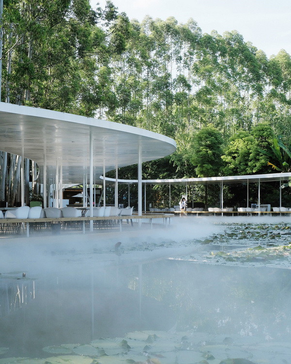 Ngược lại, MUDA Architects đã thiết kế Nhà hàng Garden Hotpot để bao quanh một cái hồ sen một cách mềm mại, một cái mái màu trắng đồng thời mô phỏng làn hơi khói mỏng bốc lên nghi ngút từ một cái nồi lẩu. Được thiết kế không có vách tường, chỉ có một cái mái được chống bởi những cây cột mỏng, nhà hàng được kết hợp sâu sắc với môi trường xung quanh, hồ sen đóng vai trò chủ đạo trong trải nghiệm.