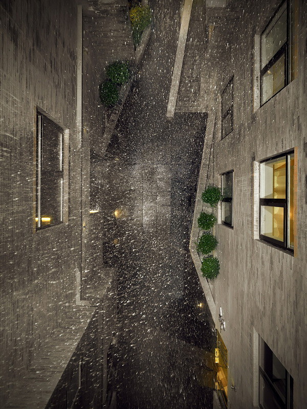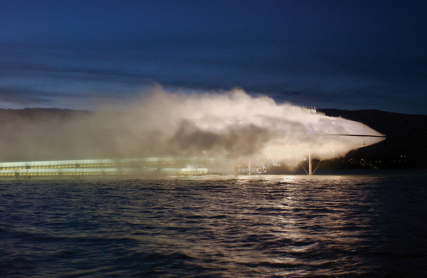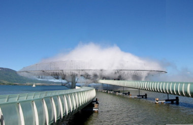 Cuối cùng và có lẽ là nổi tiếng nhất, Blur Building của Diller Scofidio + Renfro bơm nước từ dưới hồ lên trên rồi phun ra ngoài tạo thành một màn sương mịn, che phủ kết cấu kim loại trong một đám mây trắng dày đặc. Một thách thức có chủ ý chống lại tính kĩ thuật với độ nét cao của kiến trúc đương đại, công trình đã biến đổi nước sử dụng thay vì để mặt nước để ngắm nhìn.